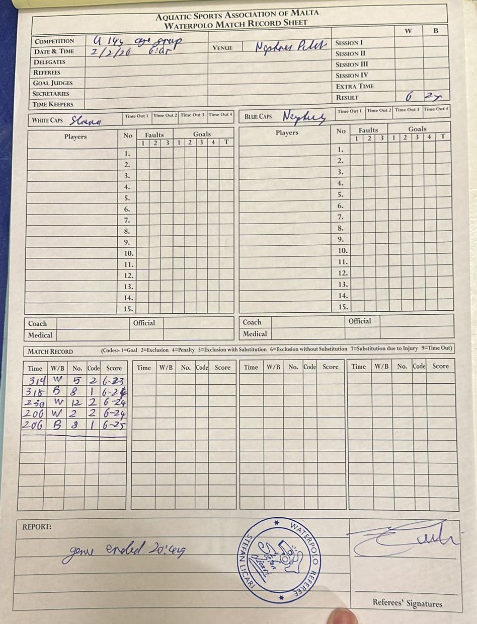 9 - 6Neptunes Neptunes U14 vs Sliema U14 Gillette |