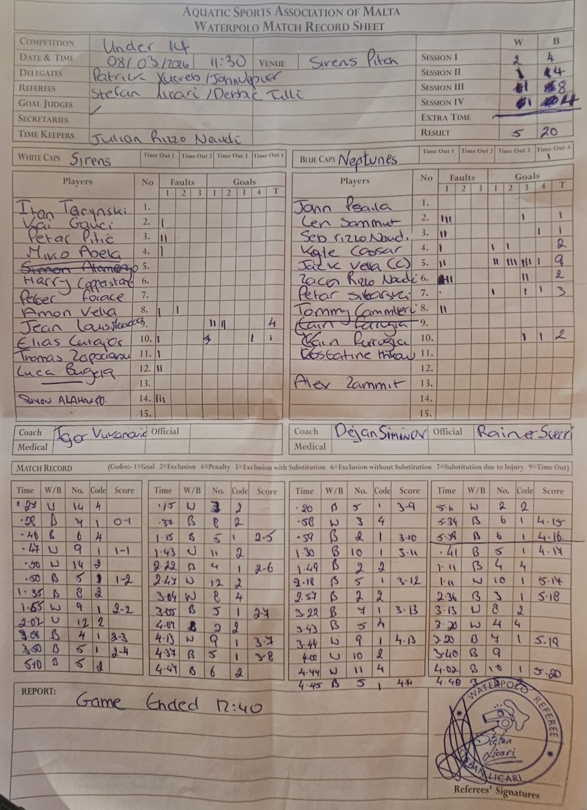 Neptunes U14 Cesca’s BH WPSC20