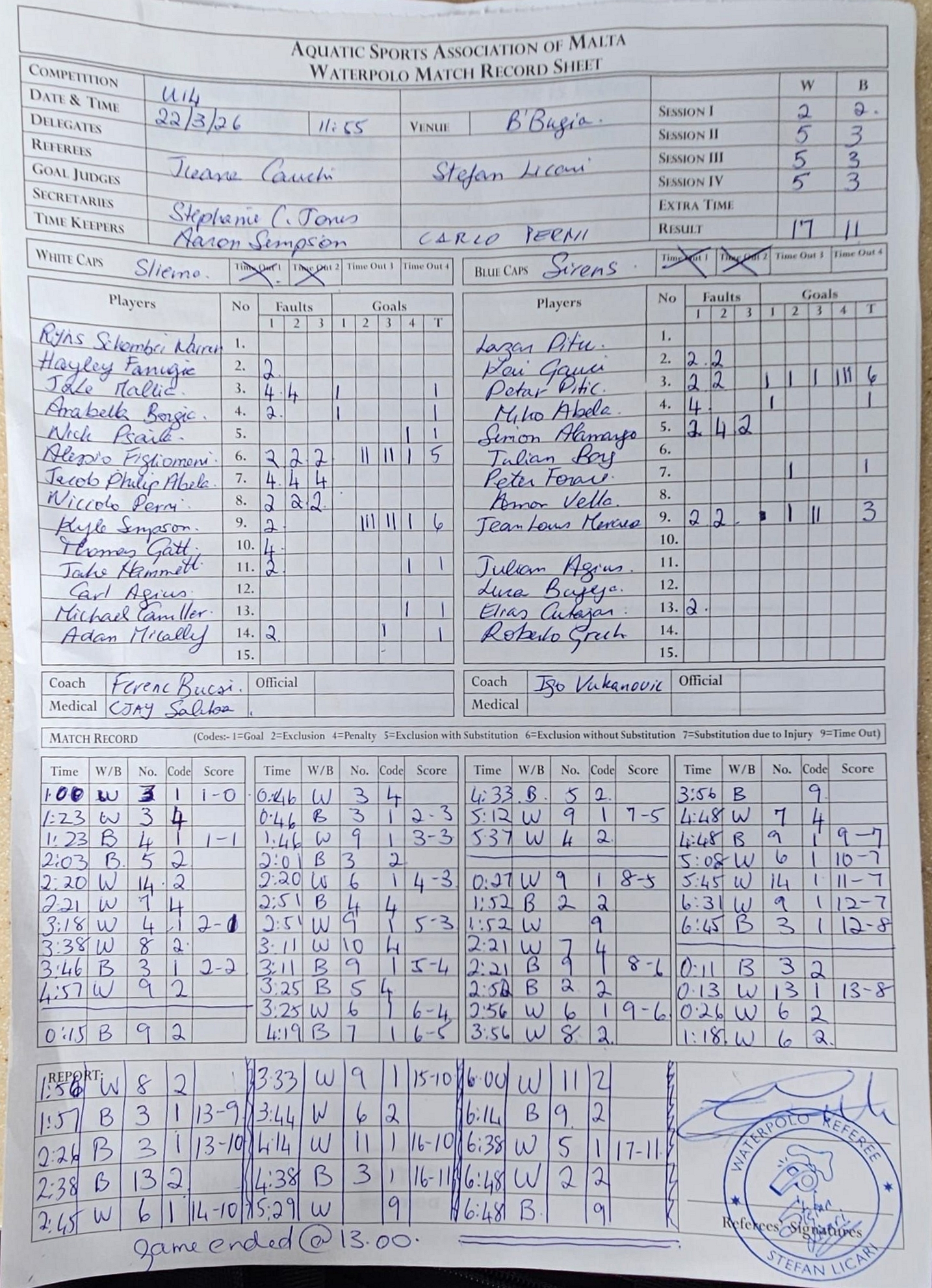 | March 22, 2026 | 11:30 am | U14 Water Polo Age Group | 2026 |