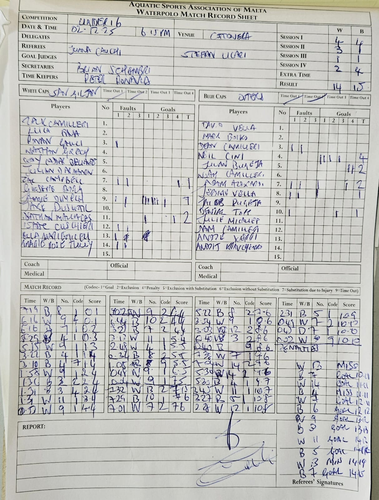 5 - 20Cottonera Otters U16 ASC vs San Giljan U16 ASC |