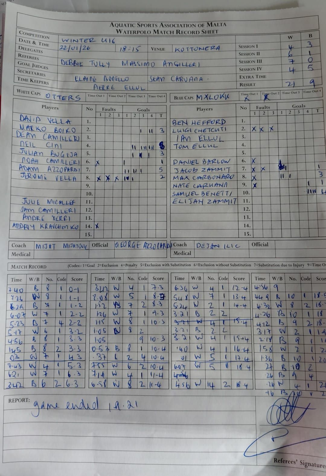 14 - 6Victoria Gozo Indoor Pool Otters U16 ASC vs Marsaxlokk U16 ASC |