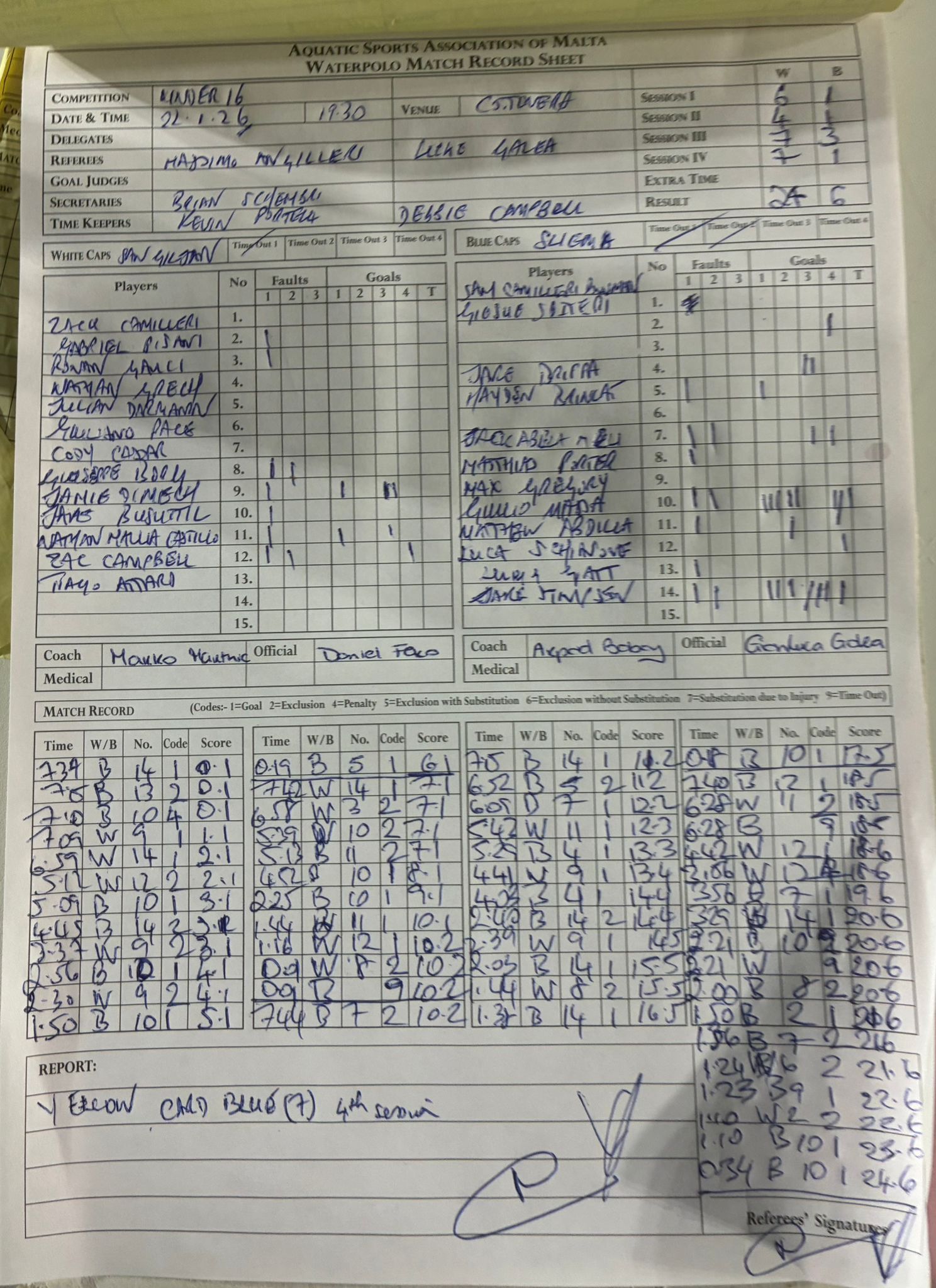 | January 22, 2026 | 7:30 pm | U16 Water Polo Age Group | 2026 |