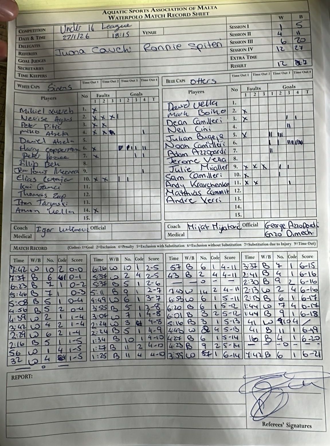 | January 27, 2026 | 6:15 pm | U16 Water Polo Age Group | 2026 |