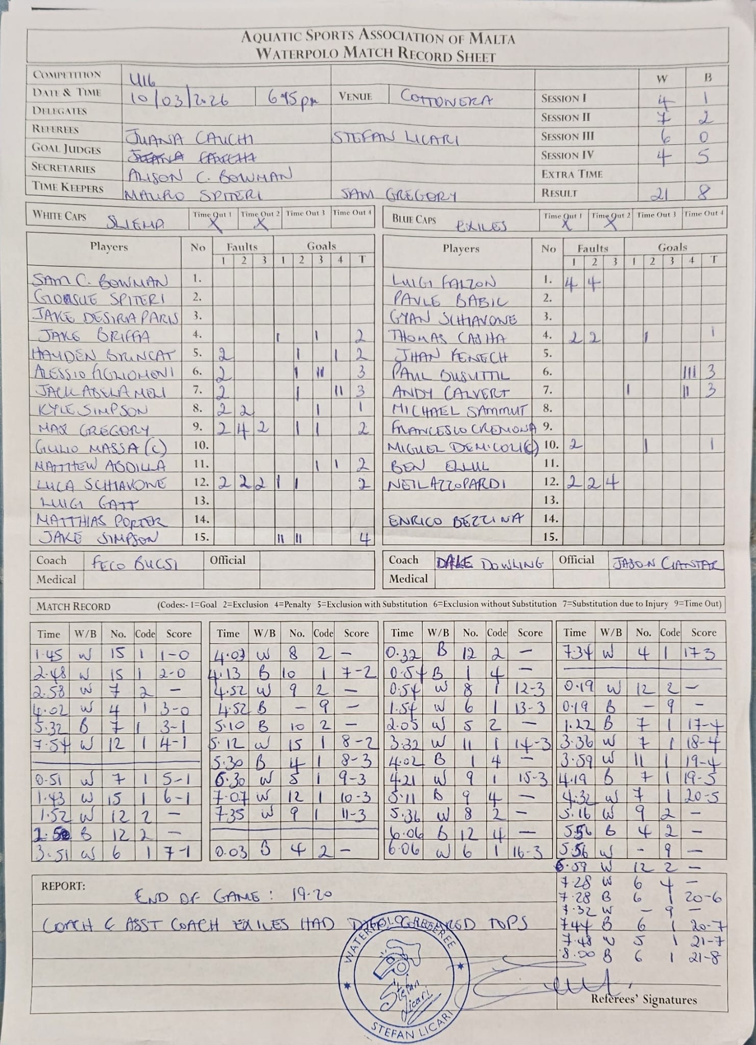 | March 10, 2026 | 6:15 pm | U16 Water Polo Age Group | 2026 |