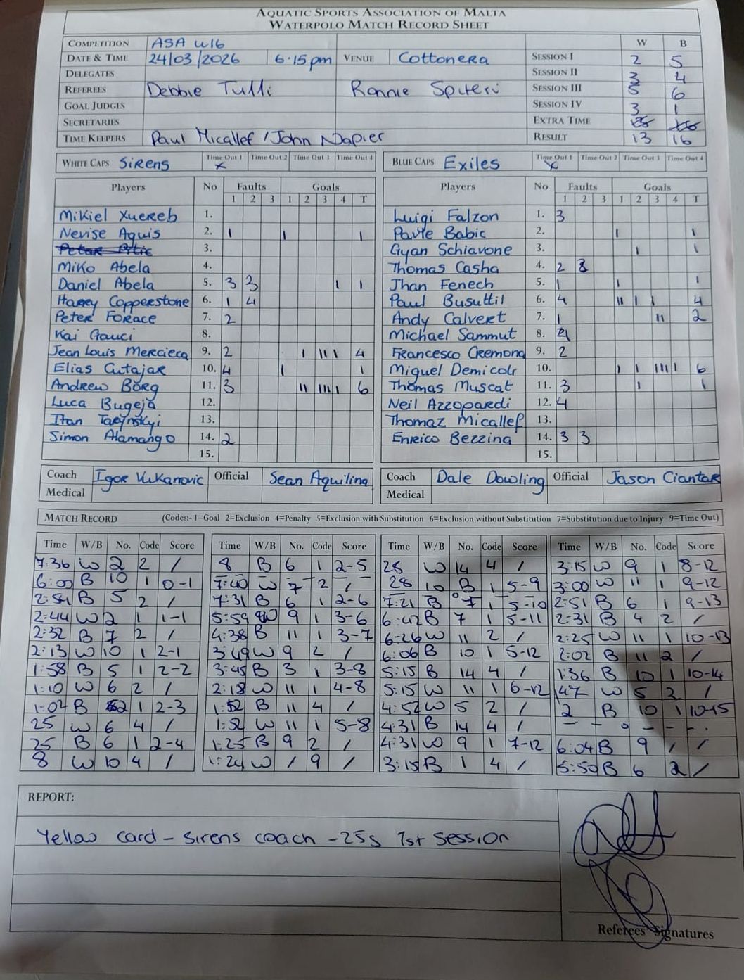 | March 24, 2026 | 6:15 pm | U16 Water Polo Age Group | 2026 |