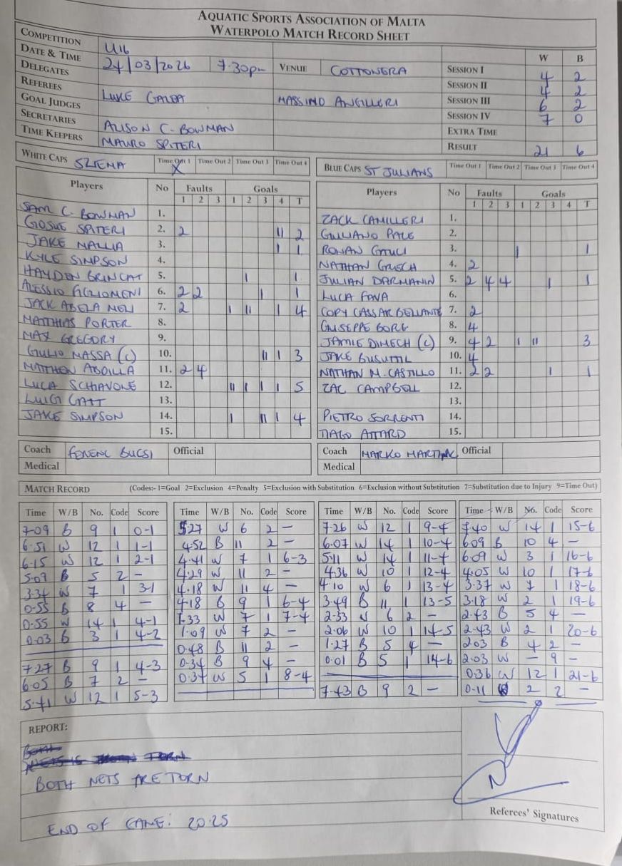 | March 24, 2026 | 7:30 pm | U16 Water Polo Age Group | 2026 |