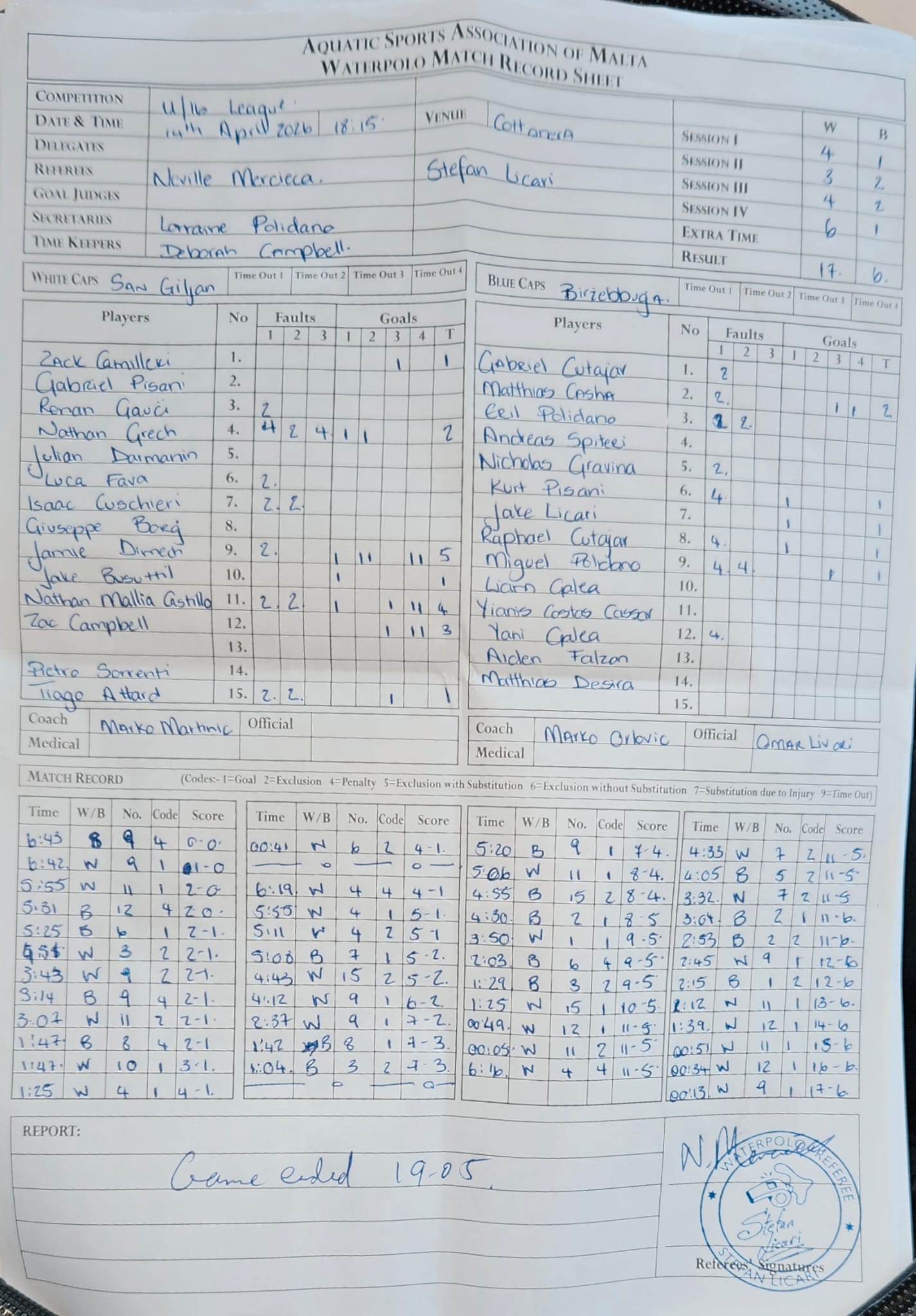 | April 14, 2026 | 6:15 pm | U16 Water Polo Age Group | 2026 |