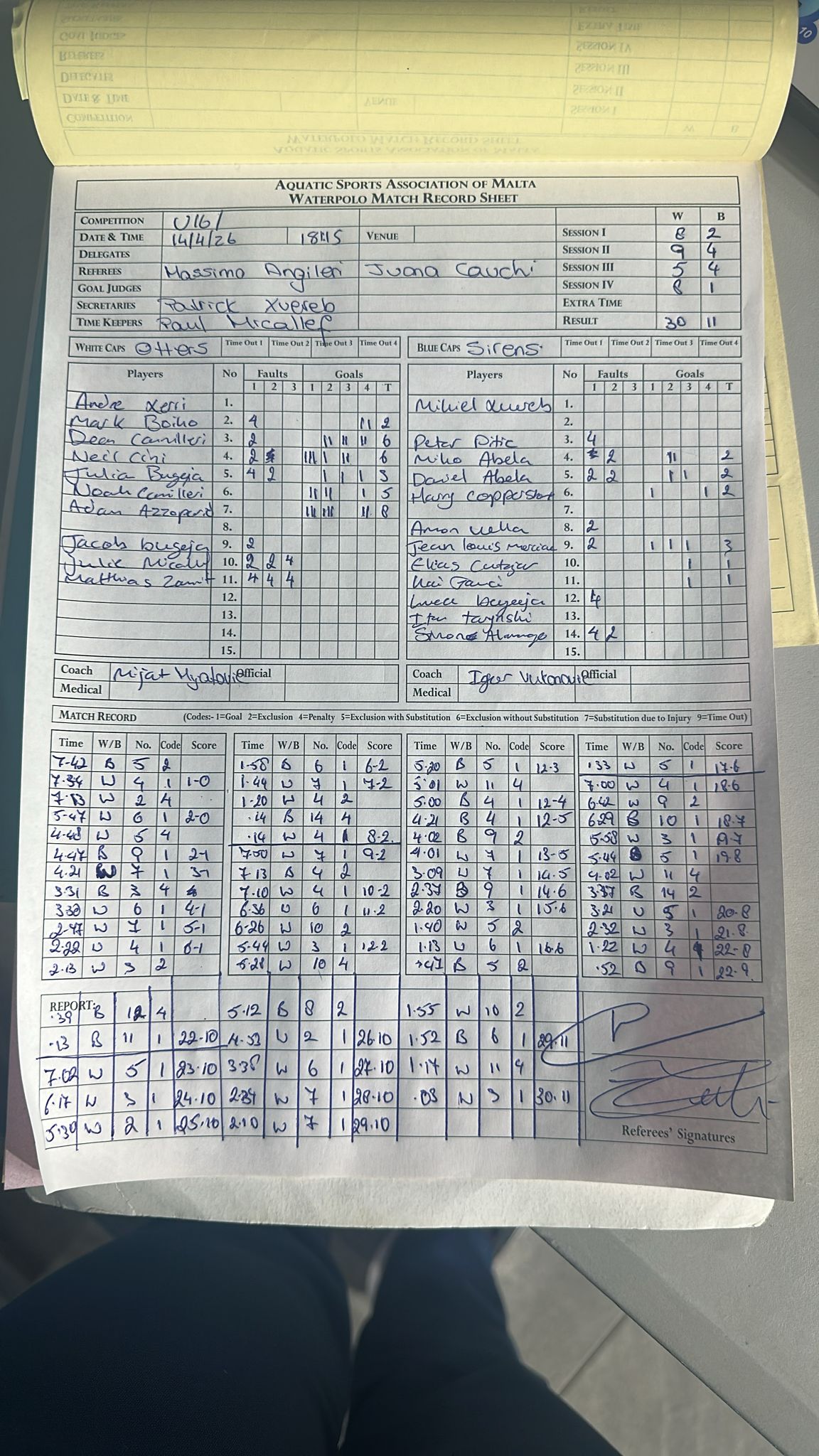 12 - 27Cottonera Sirens U16 vs Otters U16 Medirect ASC |