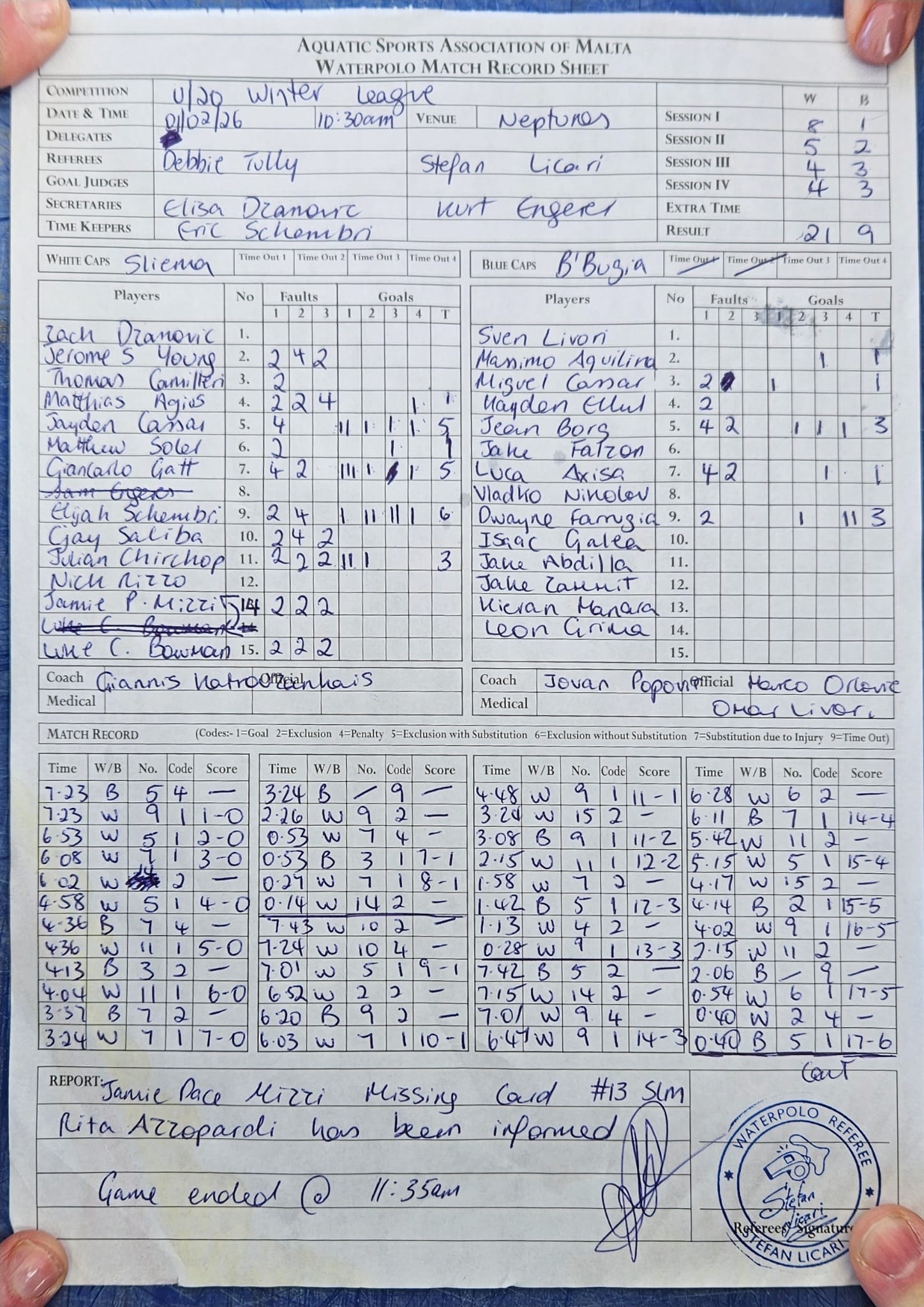 | February 1, 2026 | 10:30 am | U20 Water Polo Age Group | 2026 |