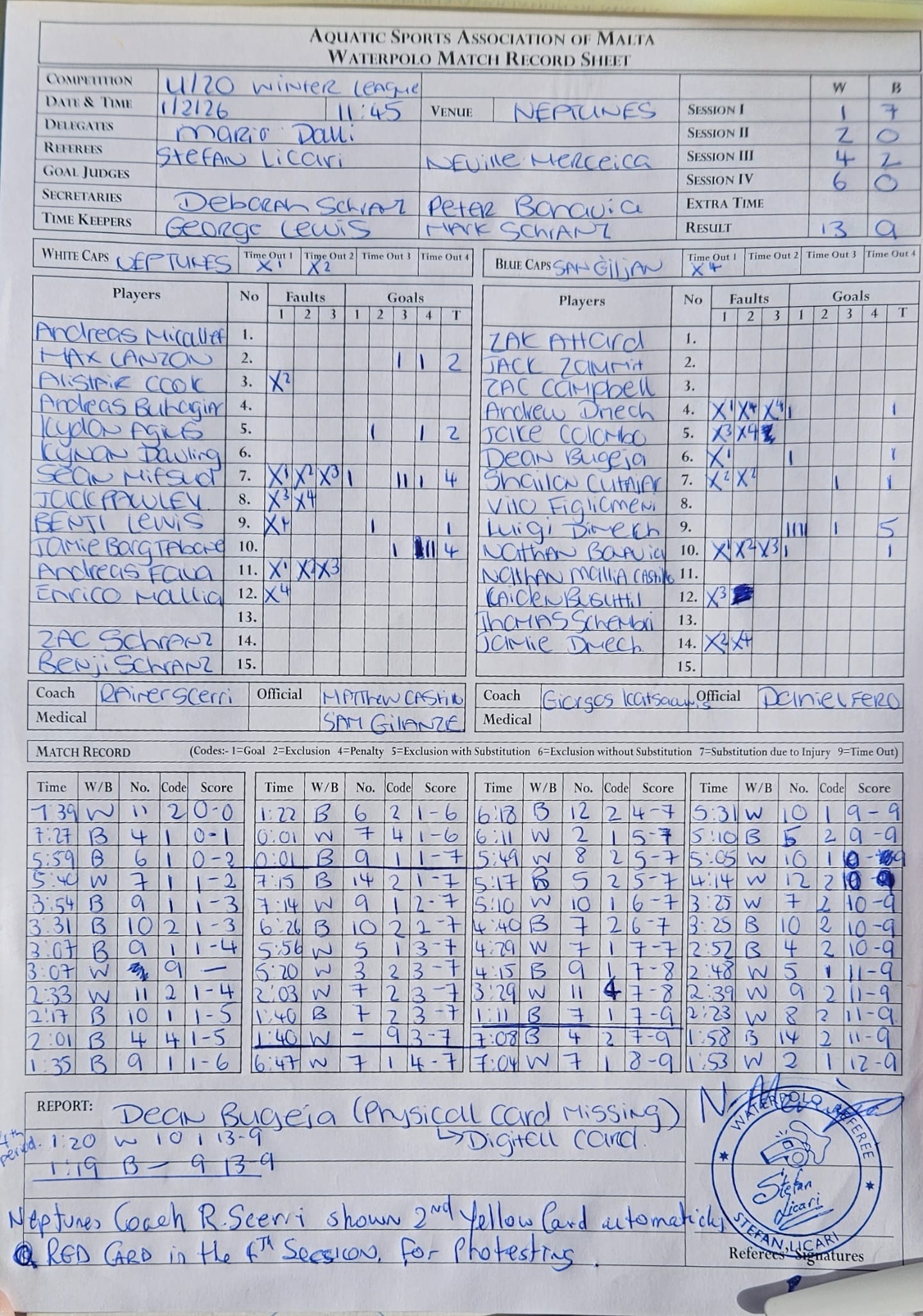 5 - 14Cottonera San Giljan U20 ASC vs Neptunes U20 WPSC |